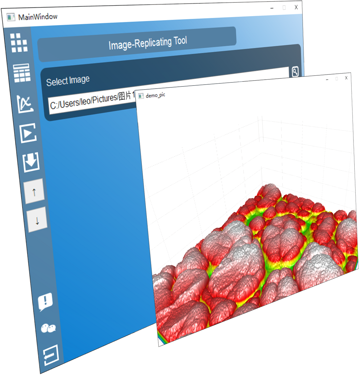是基于SEM成像原理的特点,考虑二次电子的生成原理后,利用SEM的图片经过变换,再还原成符合人眼视觉的3D数据的技术。该技术可用于粉体或其他材料的显微组织的显示立体化。